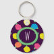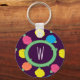 Stylised roses in bright neon pink, blue, yellow, and coral with neon green leaves are spangled across a deep purple background to create a fun floral pattern. Customise the monogram on this keychain with your initial to make it uniquely your own.