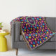 Stylised roses in bright neon pink, blue, yellow, and coral with neon green leaves are spangled across a deep purple background to create a fun floral pattern. Customise the monogram on this blanket with your initial to make it uniquely your own.