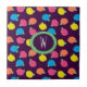 Stylised roses in bright neon pink, blue, yellow, and coral with neon green leaves are spangled across a deep purple background to create a fun floral pattern. This tile can be framed to create a trivet or placed inside a wooden gift box lid. Tiles without a frame will also fit inside the large gift box to create a matching set. Customise the monogram with your initial to make it your own.
