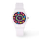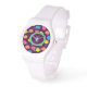 Stylised roses in bright neon pink, blue, yellow, and coral with neon green leaves are spangled across a deep purple background to create a fun floral pattern. This watch is available in a variety of styles, colours, and sizes, including sizes for men, women, and children. Customise the monogram on this watch with your initial to make it uniquely your own.