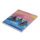 Neon Sailboats in the Sun Ceramic Tile