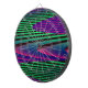 This awesome dart board features a digitally created image that resembles a series of gentle waves rippling against a calm shore. The waves are vivid neon shades of green, pink and blue and have a 3D quality.