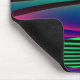This mousepad features a digitally created image that resembles a series of gentle waves rippling against a calm shore. The waves are vivid neon shades of green, pink and blue and have a 3D quality.