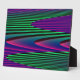 This awesome plaque.features a digitally created image that resembles a series of gentle waves rippling against a calm shore. The waves are vivid neon shades of green, pink and blue and have a 3D quality.