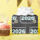 Glowing 2026 neon sign with a star on a dark gray brick wall