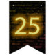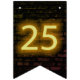 Illuminated marquee neon sign on grungy dark brick for 25th birthday party.