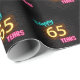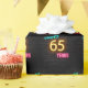 Illuminated retro neon sign on dark brick wall for 65th birthday