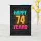 Glowing neon sign marquee on brick wall for 74th birthday.
