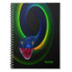 Cool abstract neon snake school spiral notebook, with a blue head and yellow eyes, against a black background. Personalise the neon green text to suit your needs. Great for back to school.
