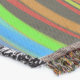 A quality printed throw has its advantages. This is a much finer weave throw than its loopier cousins, and though lighter, it is worth the investment for custom room accessorizing. The back is much prettier than the typical brown, and the fringe on the long sides very vivid, the selvage nicely done. Before photographing, I washed the throw in cold water, delicate, with a thicker woven throw the same size. On tumble dry low, this throw was dry in half the time as the other. This is a very practical quality if you use throws for furniture covers or to wrap up in frequently. The sleekness of the fabric makes it a great layer for accenting or protecting without the feeling of sitting on too much stuff. Perfect for napping or when you feel a light chill coming on. The color printing is beautiful and on this fabric, matched the design and color of my Photoshop image. This is an advantage for blending room fabrics and colors. The fringe on the short sides prints the colors from the design image and therefore varies from the side fringe. I streaked a white fractal line through the plaid pattern to give the illusion of weaving. This printed as crisp as an illusory thread, and put some white in the short side fringe, showing another advantage of print vs loomed- for artistic purposes, line lines, detail, and color integrity can be planned and preserved. My loomed throws have color limitations and more of a needlepoint texture. Print throws reproduce an exact image. The throw felt a little stiff straight out of the package, but this went away in the first delicate wash. Of course I searched the wash water for ink or bleeding and there was none.