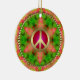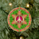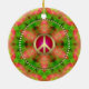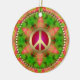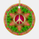 Groovy golden peace sign customisable ceramic ornament in neon green, orange and pinks - made from geometric fractals design. Each side has its own unique energy output. Makes a great personalised gift idea ~ keepsake gift ~ decorate and hang this positive happy energy ornament in your home or office!