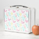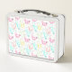 This is a standard metal lunchbox that appears to work just fine. We designed this box ourselves with an uploaded photo and custom text on the front and back. It looks absolutely beautiful except the front of the lunchbox is not centered like it shows in the photo. The print borders don't align with the inset flat part of the box where the preview photo online showed it perfectly centered in there. The back looks nice and centered though.