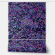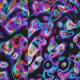 A vibrant and colourful abstract pattern featuring intricate neon shapes in vivid cold tones. This striking design showcases a textured interplay of light and form against a bold black background, creating a dynamic and eye-catching aesthetic.