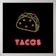 Neon red "Tacos" text with neon crunchy shell taco silhouette on black background makes this a great design for restaurants, food courts and food trucks...just to name a few