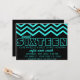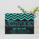 Perfect for a Sweet 16 party, this invitation features a stylish neon teal and black chevron print.