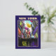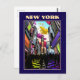 This bold and festive postcard features a square neon-style illustration of Times Square, New York City — lit with glowing colours of purple, green, and yellow, set against a playful confetti background. At the top, “New York” is displayed in customisable text, allowing you to personalise it for any occasion: travel memories, party invites, birthdays, or gifts.