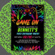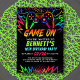 Your gamer has levelled up! This video game birthday design has bold and edgy styling with lightning and a console controller to set the stage for a great celebration. The black and neon colour scheme and the bold fonts are perfect for gamers of any age. Download your digital copy today to press start on the best birthday ever!