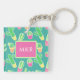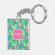 Neon Watercolor Cactus In Pots Pattern Key Ring