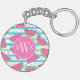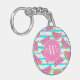 Neon Watermelon on Stripes Pattern Key Ring