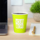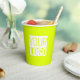 Solid colour Paper Cups in neon yellow- solid colour background and a cover logo . Personalise it now . Modern and trendy design by Alma Wad for company parties .