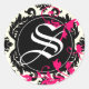 Neopolitan Damask Monogram "S" black/white/fuschia Classic Round Sticker