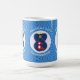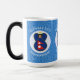 Magic morphing mug features an Nepali Flag Angel, dressed in the flag of Nepal, inside a white, fractal circle of squiggly squares. The circle is on a blue fractal background of squiggly squares. Add a name, holiday, and year to personalise your mug as a gift or to add to your holiday decorating. Lovely Hanukkah decor. Design shows on three sides of mug.