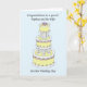 A stylish three tiered wedding cake in pastel colours, against a pale blue background. The words 'Congratulations to a special Nephew and his Wife on their Wedding Day'.
