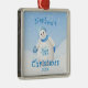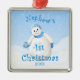 Cute little snowman wearing blue winter hat, scarf and mittens as delicate snowflakes fall through the winter sky is a delightful Christmas design for nephew's first Christmas ornament. You may also enjoy matching snowmen designs on other ornaments, cards and gifts available in my store. Original art and design by Anura Design Studio