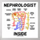 Nephrologists will enjoy this poster featuring all key parts of a kidney's nephron along with the saying "Nephrologist Inside". Educational, scientific poster for anyone who thinks about their kidneys and excretory functions from an anatomical perspective!