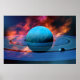 The beautiful blue planet of Neptune with its ring system and one its moons.