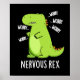 Nervous Rex Funny Dinosaur TRex Pun features a cute dinosaur who's a nervous wreck because he's always worried. Perfect pun gift for family and friends who love cute trex dinosaur puns.