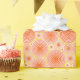 Radient spoked wheels-within-wheels in shades of orange and peach with a mustard gold background