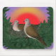 A pair of Ringneck doves are building a nest within conifer branches as the sun sets.