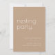 If you love simple boho style, this invitation is right for you. The invitation features an elegant design, with a soft, beige background. In the centre, the party details are beautifully scripted in a white text exuding an air of sophistication. Invite guests to your nesting party in style. Background colour and text is editable.