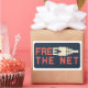 Free the net for greater access for everyone. How? By making connections fast and free. Ethernet RJ45 connector graphic embedded in the message: FREE THE NET. Cool skateboard and water bottle sticker for wifi loving Internet surfers.