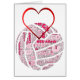 Netball word cloud ball and heart shaped design. Netball captain and positions greeting card ideas.