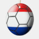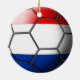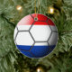 Flag of Netherlands embossed across a soccer ball on a two-sided ceramic ornament.
