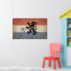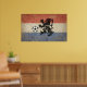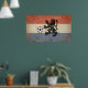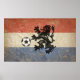 Dutch lion playing with the ball on the field that looks like distressed flag of Netherlands.