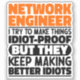 Funny Network Engineer Sayings "Network Engineer I Try To Make Things Idiot Proof But They Keep Making Better Idiots". Grab this Funny Network Engineer design as a funny gifts for an awesome mum, dad or friend.