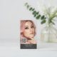 Modern networking QR code business card with 2 photos for makeup artist, hair stylish, lashes or nails extensions small business. This trendy chic cosmetologist scannable barcode business card is a good way to promote and engage with your customer by sharing more info about your business using the QR code, connect to your social media or add your logo for branding purpose.