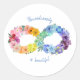 Celebrate neurodiversity! Rainbow neurodiversity infinity symbol made of flowers surrounded with the words "Neurodiversity is beautiful" on stickers to put anywhere and everywhere.