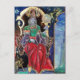 Colourful, vibrant , contemporary painting in gold ,blue,red,green,brown colours . A mysterious hypnotic sorcerer with elegant gorgeous red velvet costumes holding a magic sphere sitting on a gothic throne with gargoyles and an owl. Ambient is surreal,fantastic ,alchemic where you see a jester is drinking from a cup, a templar monk flying on a frog,transparent bubbles,fantasy landscapes with hell fire,cosmic blue sky with stars , mountains of heaven,trees .Egg Tempera on wooden panel with gold. 1989 , Miniature Made with pictorical techniques of 1300 by Alessandro Lumini (c)
