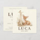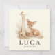 Dit stijlvolle neutrale geboortekaartje met een lief hertje en monogramletter L heeft een zachte, natuurlijke uitstraling. De rustige aardetinten en waterverfillustratie maken dit kaartje perfect voor ouders die houden van een tijdloos en modern bosdieren ontwerp.