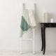 Neutral Arrangement III by Emma Scarvey. Features stemmed greenery in a greenish teal vase.