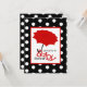 A neutral unisex baby shower invitation featuring an illustration of a red umbrella over a background of black with white polka dots. Personalise the text on back with details of your occasion.