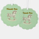Show your appreciation with this editable baby shower thank you paper ornament, designed to coordinate beautifully with the “Sweet news is in the air” collection. Featuring a charming rocking horse, soft pastel green, beige, and warm brown tones and a ribbon for hanging, this ornament makes a heartfelt keepsake for guests.