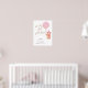 "We are glad you are here" baby shower welcome sign, design feature cute simple minimalist watercolor teddy bear wearing party hat with pink sparkling balloon in pink, gold, tan colour schemes. Celebrate baby girl baby shower. This design also perfect for baby expected in summer, fall, spring, and winter season.
