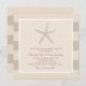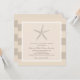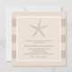 The "Shoreline Chic" wedding invitation in a square format features stylish stripes, a starfish illustration, and neutral white, beige / sand, and taupe colors. Simple and elegant style, perfect for a seaside wedding destination.