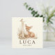 This stylish neutral birth announcement card featuring a sweet deer and the monogram letter L has a soft, natural look. The calm earth tones and watercolor illustration make this card perfect for parents who love a timeless and modern forest animals design.