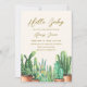 minimalist boho watercolor cactus baby shower, cowboy baby shower, garden baby shower theme, design feature with watercolor cactus succulent and text " Hello Baby". this unique design perfect for both baby boy and girl baby shower, gender neutral baby shower design. you can customise your own text via " personalise this template".